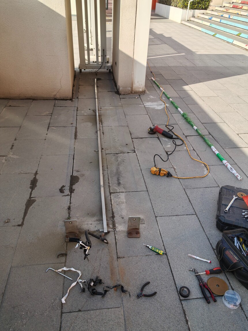 西安曲江二小第一分校锻滑门维修完毕,旧门重获新生,行走平滑顺畅得到客户好评。